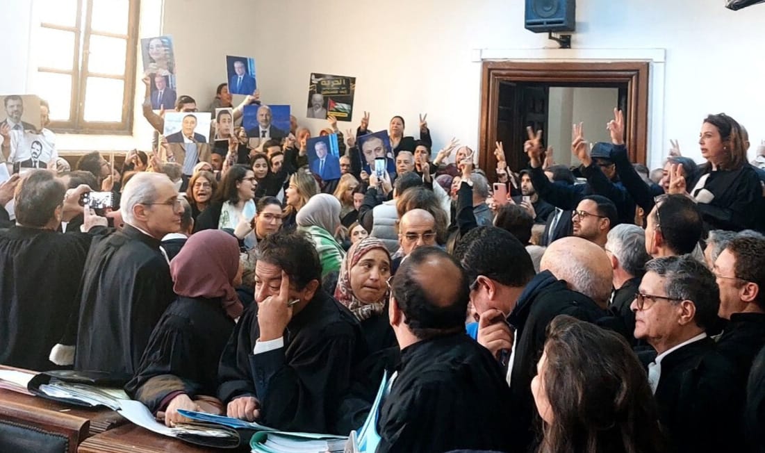 انطلقت اليوم، الثلاثاء 4 مارس 2025، أولى جلسات محاكمة المتهمين في قضية “التآمر على أمن الدولة” أمام الدائرة الجنائية المختصة في قضايا الإرهاب بالمحكمة الابتدائية بتونس، في ظل إجراءات استثنائية مثيرة للجدل، حيث جرت المحاكمة عن بُعد دون حضور الموقوفين، الذين تابعوا الجلسة من داخل السجن عبر تقنية الفيديو، فيما سُمح فقط للمتهمين غير الموقوفين بالحضور شخصيًا في قاعة المحكمة.